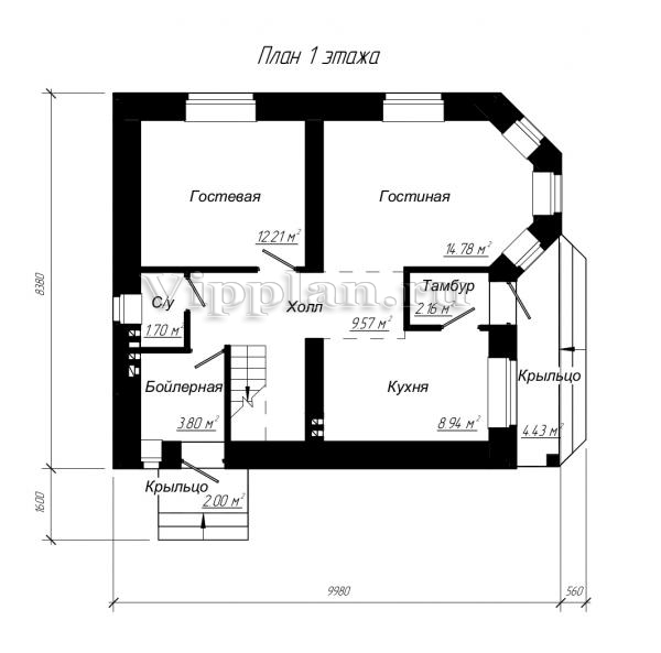 | Размеры дома: | 9.98м×8.38м |