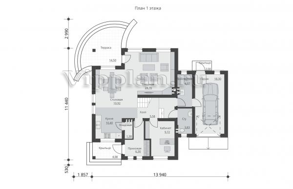 | Размеры дома: | 13.94м×11.44м |