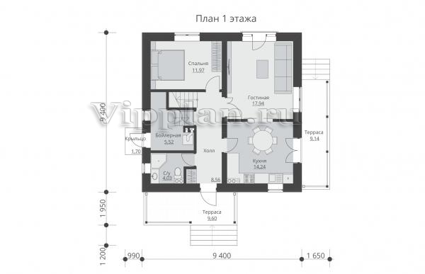 | Размеры дома: | 11.35м×11.05м |