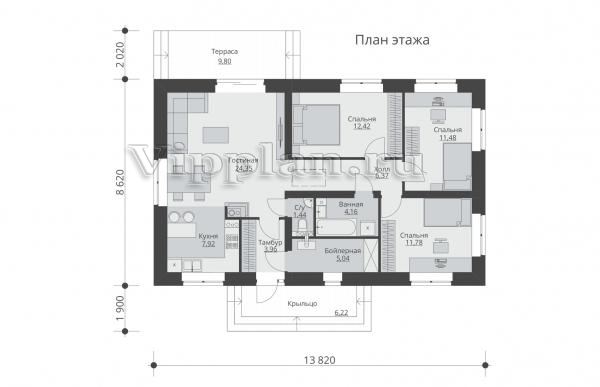 | Размеры дома: | 13.82м×8.62м |