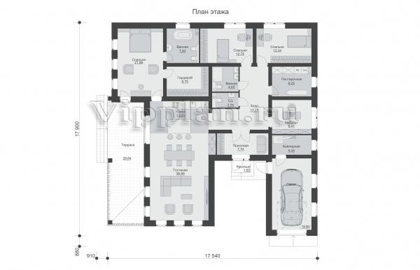 | Размеры дома: | 17.9м×17.54м |