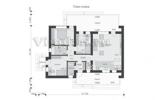 | Размеры дома: | 10.15м×15.15м |