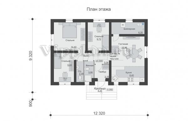 | Размеры дома: | 9.32м×12.32м |